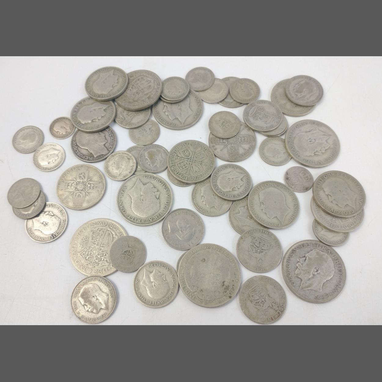SILVER COIN HOARD. A great little collection of 0.500 grade silver coins. Mainly UK and all pre 1946. Total weight 330g approx