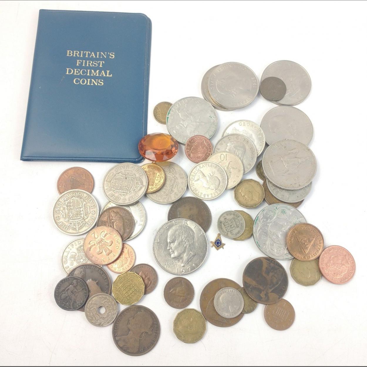 A small collection of obsolete UK coinage with various other small pieces. An interesting little collection.