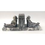 A pair of white metal Pierrot bookends 14cm long x 11cm high