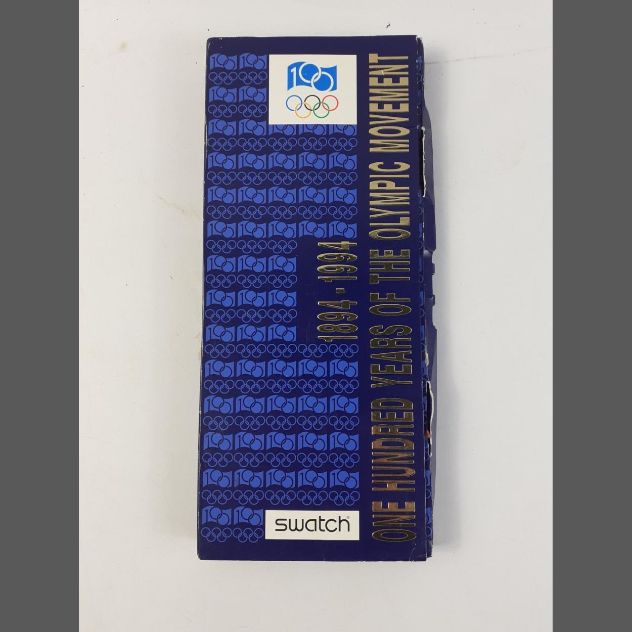 SWATCH One Hundred Years of The Olympic Games. Boxed in original box which does have some wear. Suspect will need a new battery but appears unworn.
