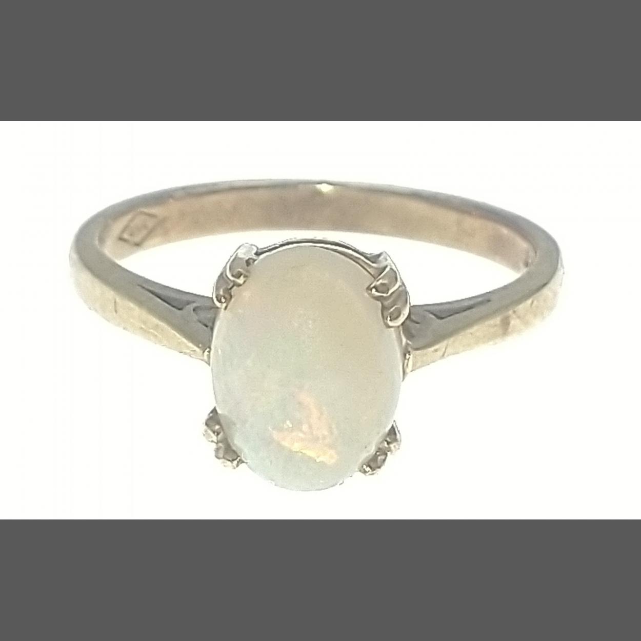 OPULENT OPAL - A QUALITY 375 hallmarked yellow gold ring with a large mounted oval OPAL stone centred - gross weight 2.54g approx - ring size R/Q