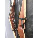 Two Dunroy 66 KINGS OF KELSO (271488 and 271489) bows with carry bags and a separate wooden case containing 16 arrows