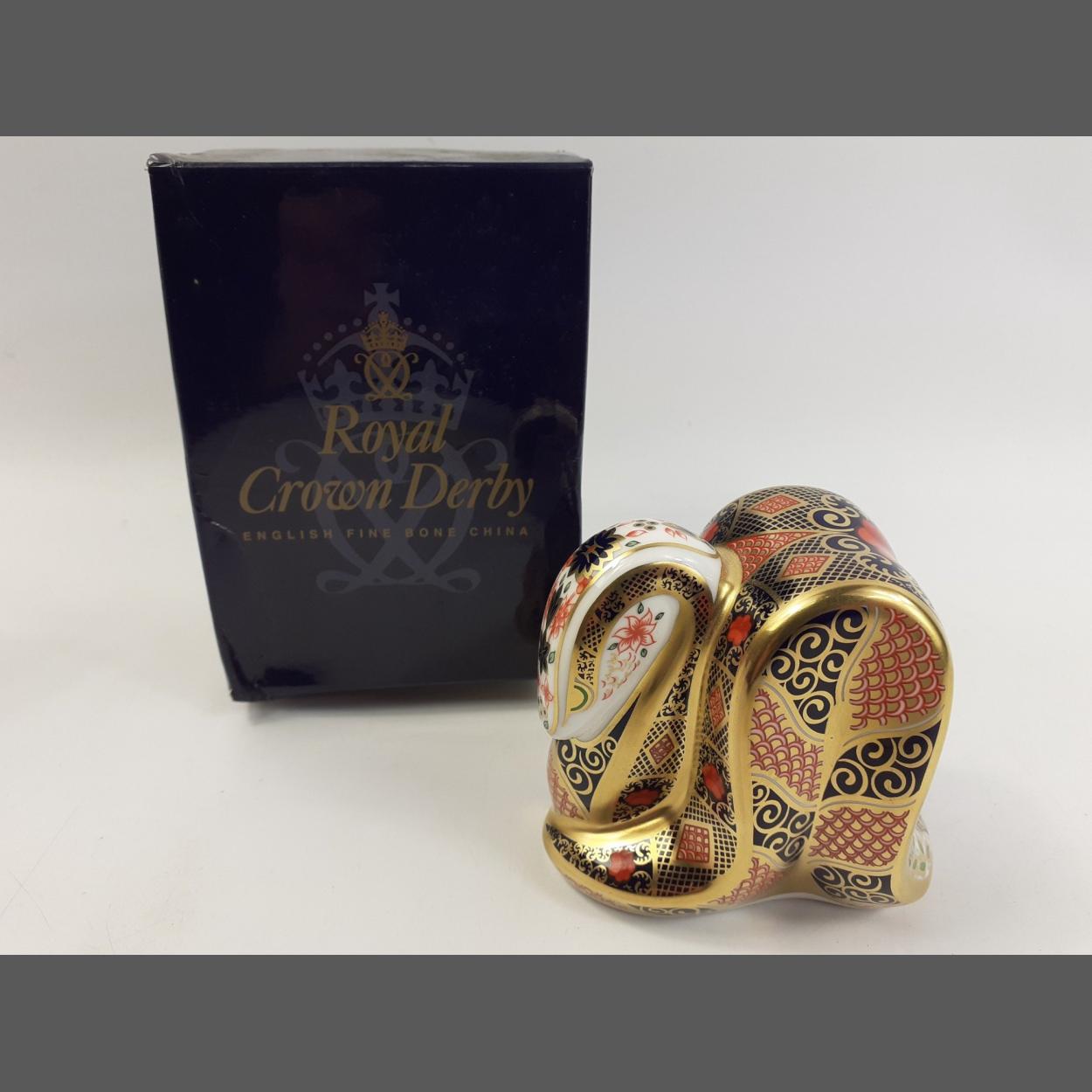 A ROYAL CROWN DERBY Old Imari snake paperweight with gold stopper, comes with original box, figure stands 8cm tall, no damage