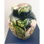 A MOORCROFT limited edition (210/300) 'Chatsworth Rose' ginger jar with lid from 2001 by PHILIP GIBSON, stands approx 15cm tall comes with original box. There are a few faint scratch marks but it does not detract from the beauty of this item
