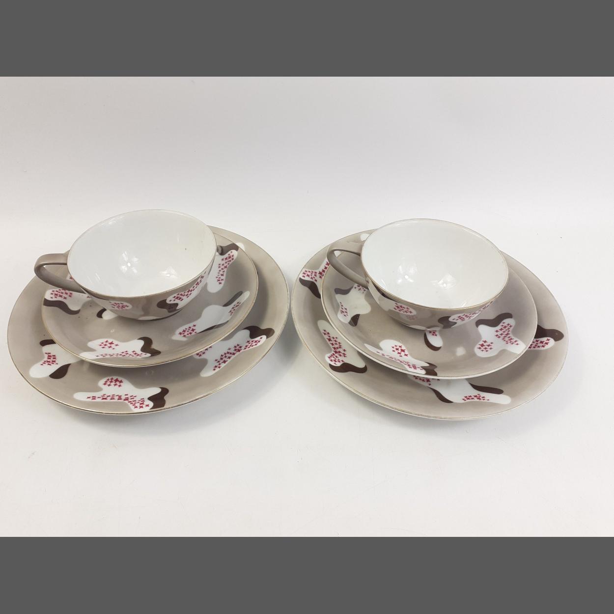 Rarer NORITAKE side plate, tea cup and saucer. A lovely pair of trios in apparently an unusual pattern.