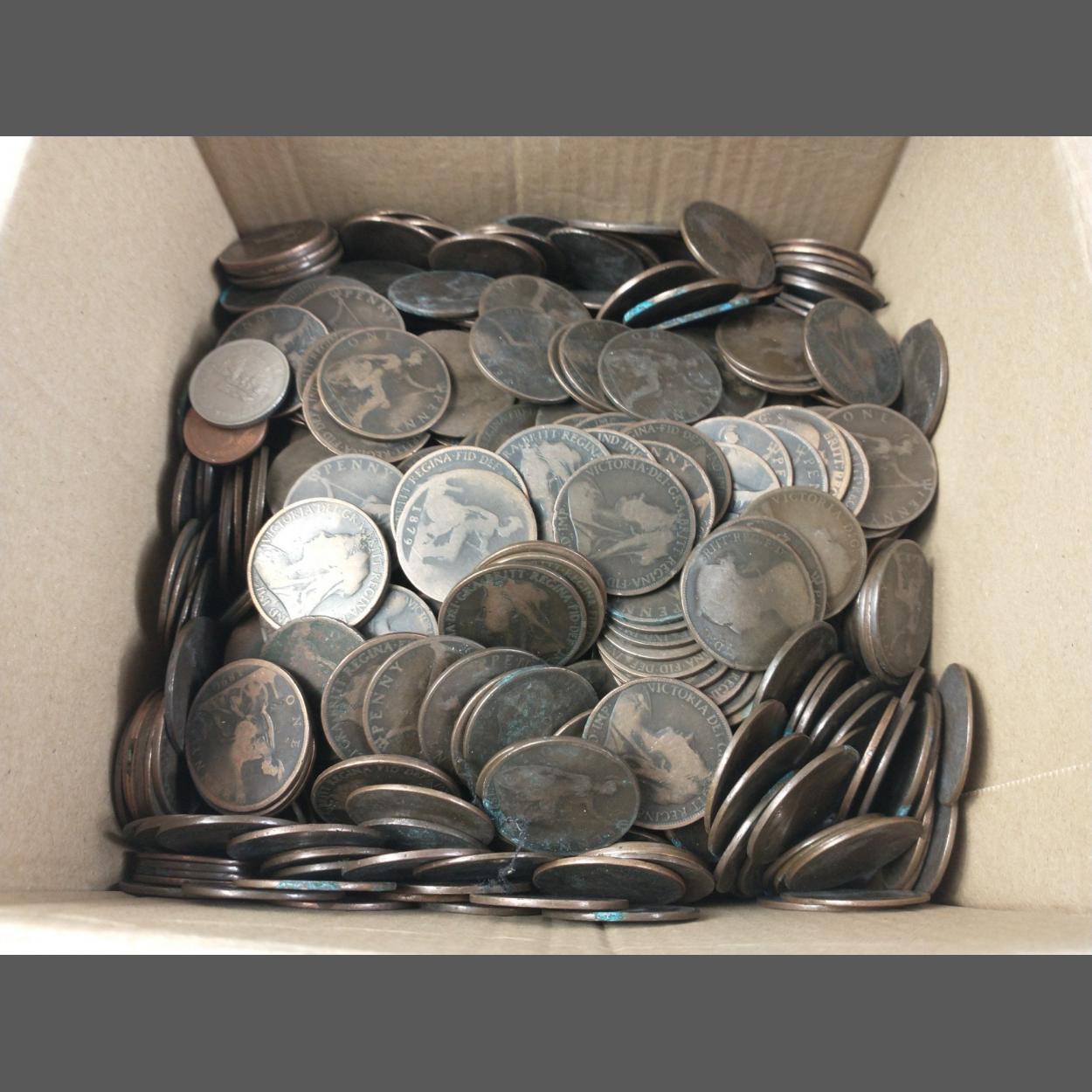 A HUGE! quantity of mainly VICTORIAN copper pennies. Ranging from small bun heads to Jubilee with some later. All with wear and some with damage but still an interesting lot and a useful 7kg approx in weight.