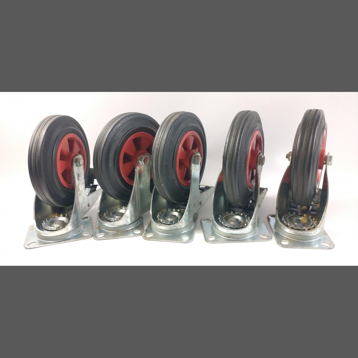A set of five robust sturdy DOLLY WHEELS. Heavy steel construction with heavy duty rubber 8" wheels (approx). In good used order ready for that project you have meaning to get around to for the last few years !