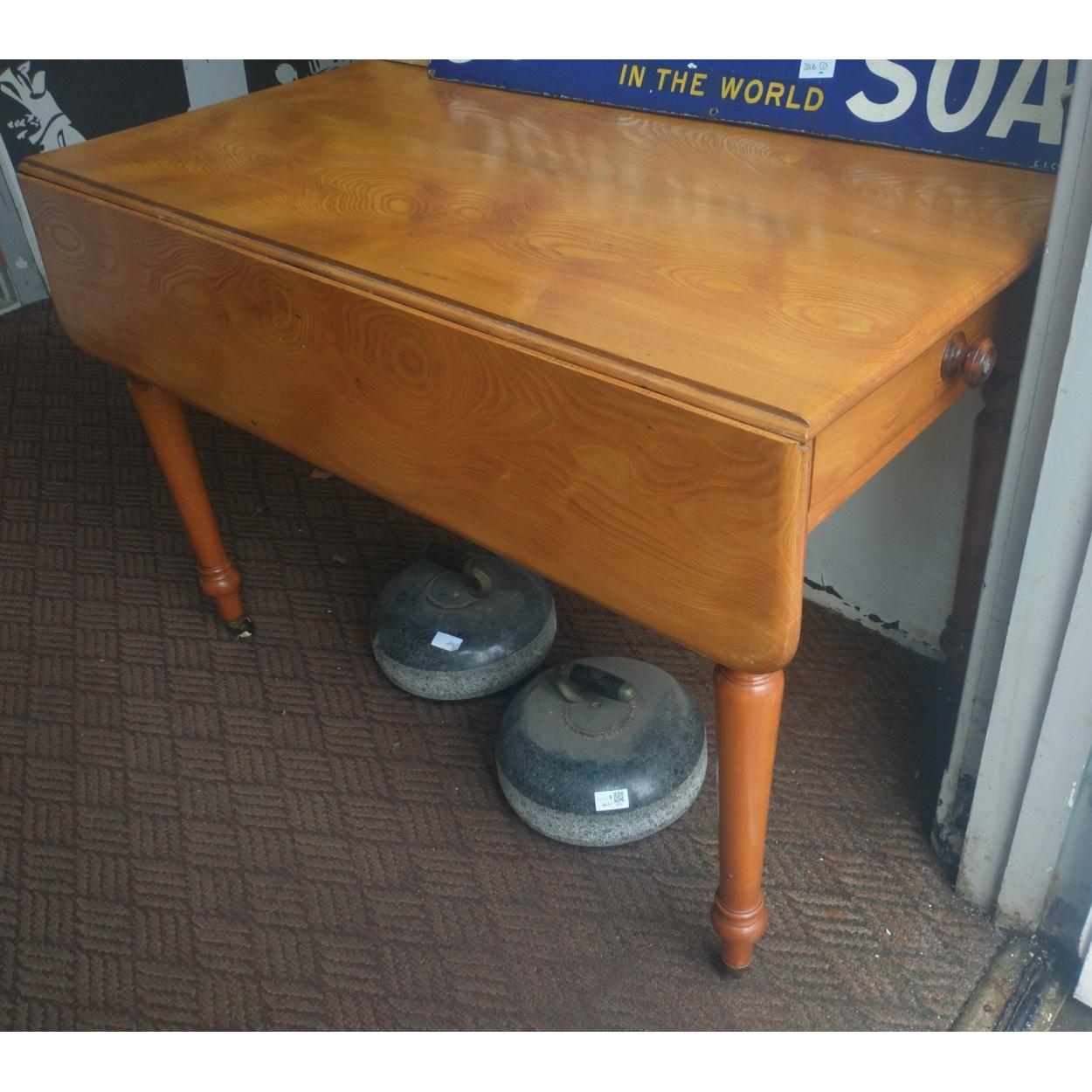 A nice antique VICTORIAN drop-leaf table with drawer recently restored - dimensions 4ft length x 3ft once extended with original porcelaine castors