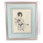 A limited edition signed aquatint of 'FEMME DE BANJO' by PAUL EMILE FELIX RAISSIGUIER, frame size 47x40cm
