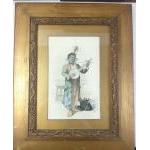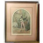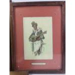 ORPHEUS AT THE SEASIDE, an 1895 hand-coloured lithograph frame size 43x33cm, on original watercolour of a clown playing the banjo signed M Child frame measure 48x38cm and a separate playing the banjo frame size46x39cm