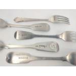 A collection of five assorted forks to include a 1789 London silver fork, an 1852 Edinburgh silver fork, an 1859 Sheffield silver fork and a pair of 1833 London forks, gross weight 253g