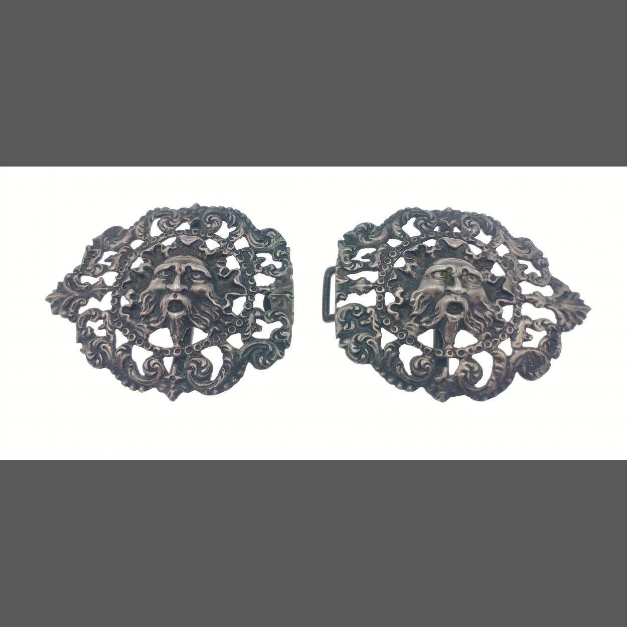 A pair of white metal shoe buckles - would have done a pirate proud! each approx 6cm wide