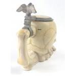 An unusual skull shaped tankard with eagle finial, stands 17cm tall, 18cm wide approx