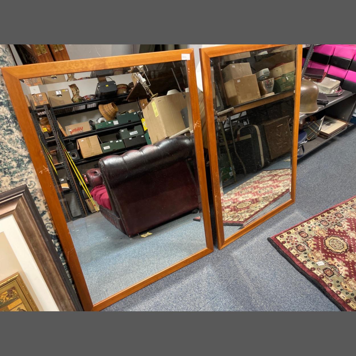 Two wooden framed wall mirrors with bevelled glass frame size 98x69cm