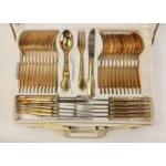 A 12 place setting BESTECKE SOLINGEN 24 carat plated cutlery set within a white attache style canteen case