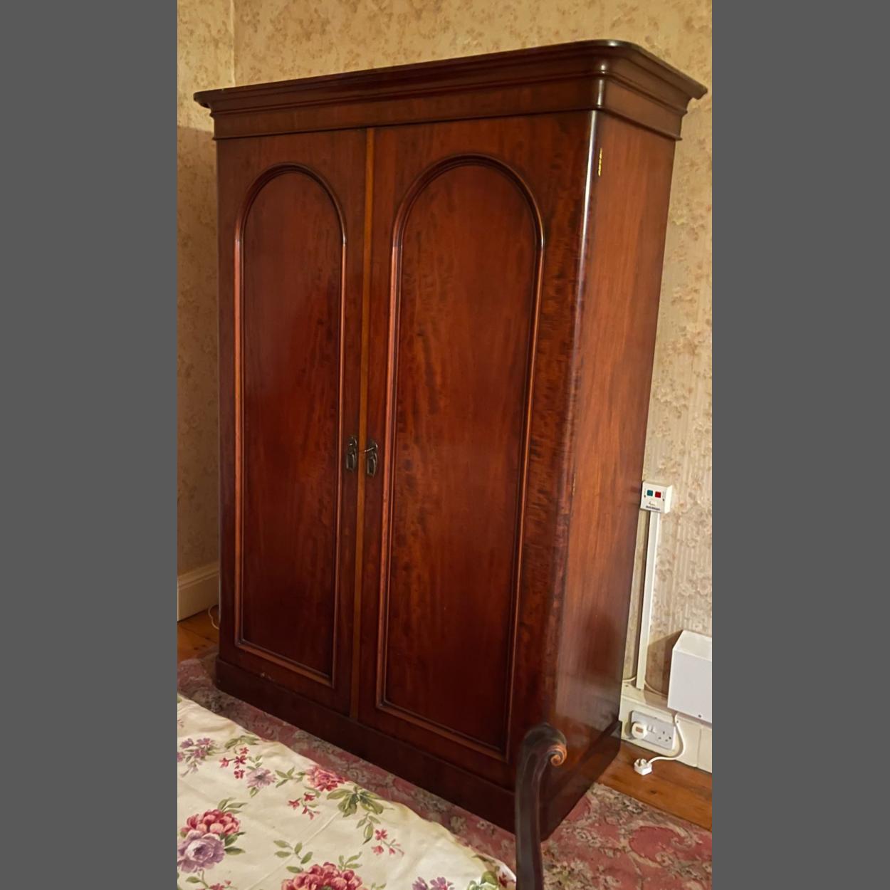 SUPER QUALITY! A VICTORIAN mahogany two door wardrobe in lovely condition - dimensions 4.5ft wide x 6.5ft height x 18" depth approx