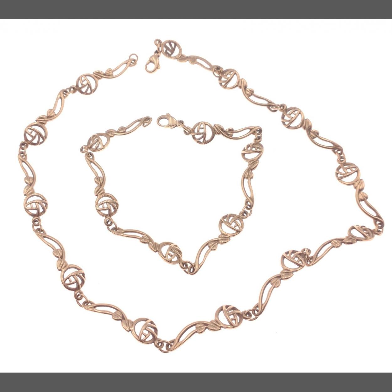9ct stamped NECKLACE & BRACELET set - necklace weight 15.38g approx and length 38cm approx and also the matching bracelet weight 7.68g approx and length 19cm