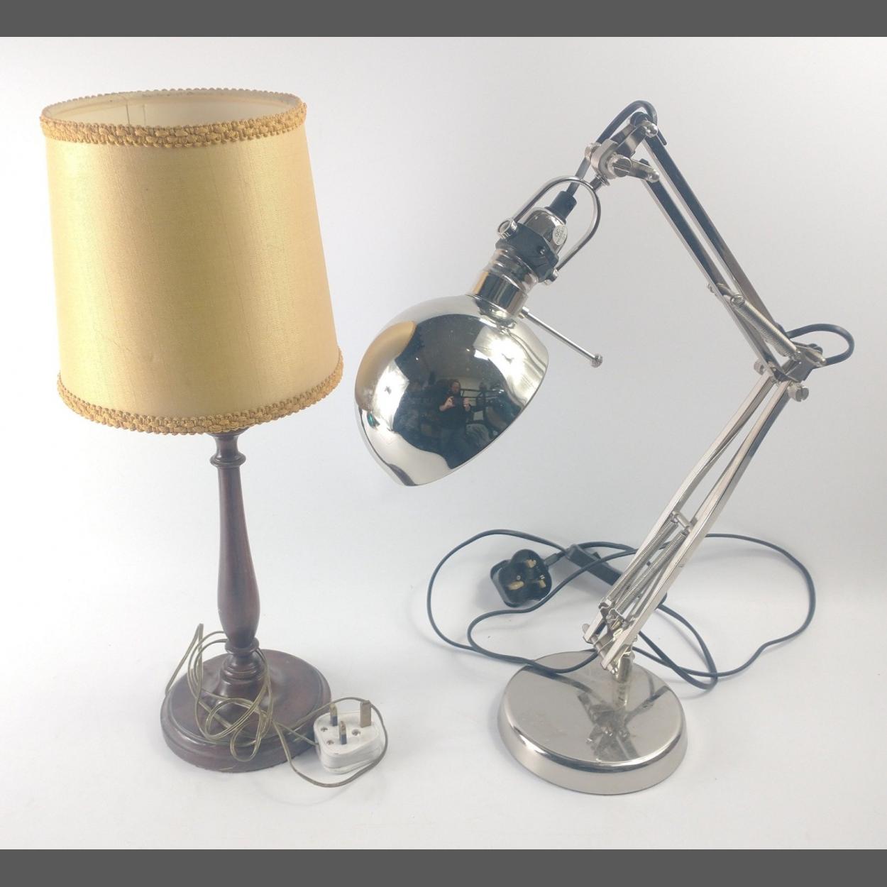 Two tables lamps to include angle poise and wooden based with shade (48cm tall approx)