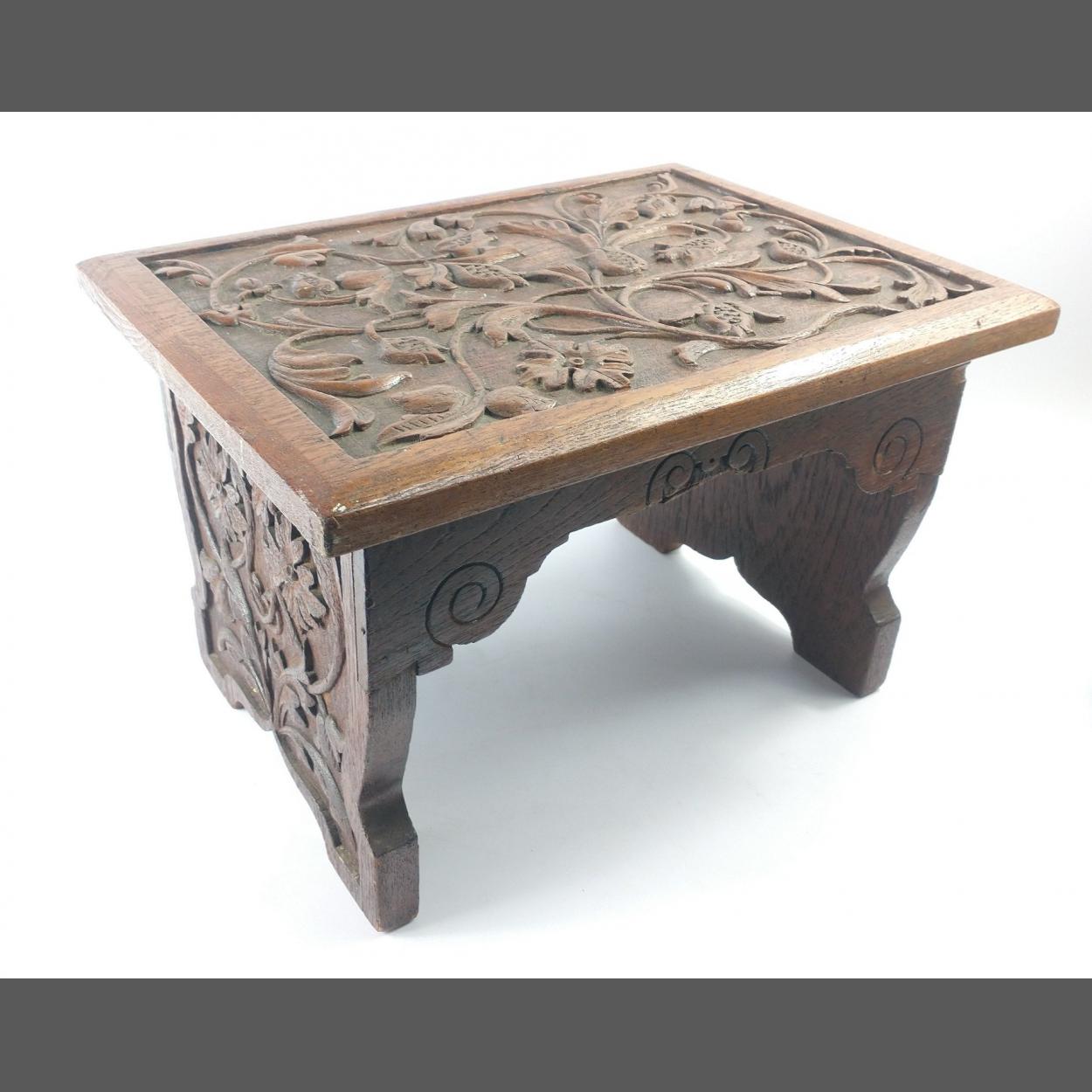 Wooden footstool with carved floral top and sides