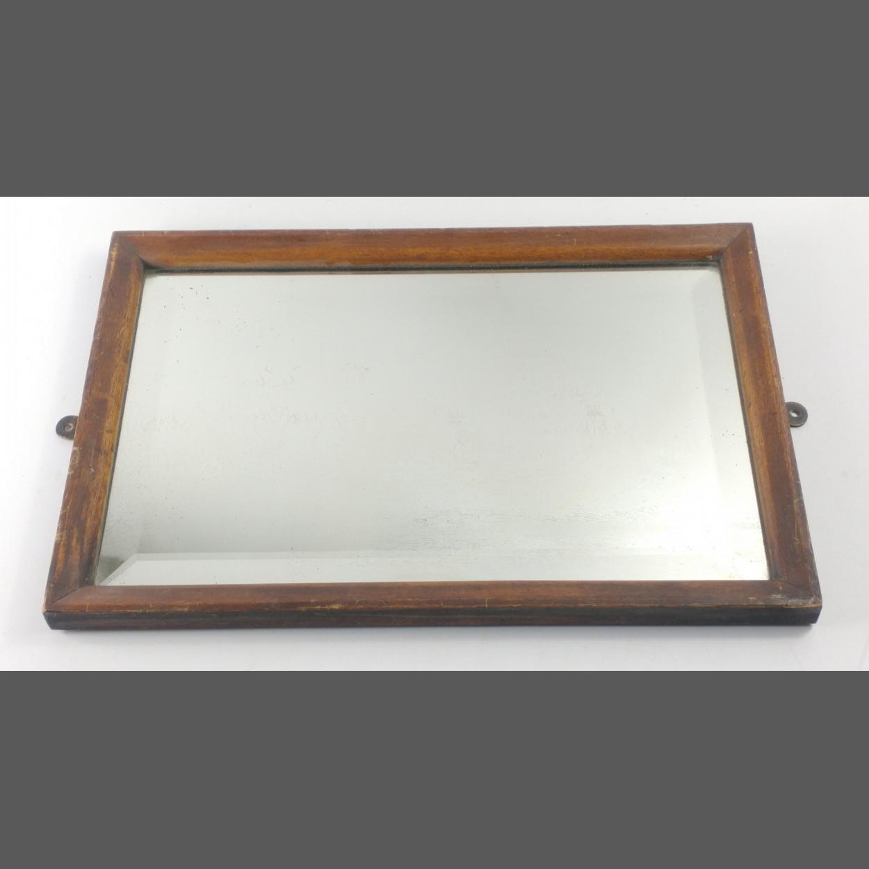 Oak framed beveled mirror with wall mounts. Frame size 51cm by 36cm approx