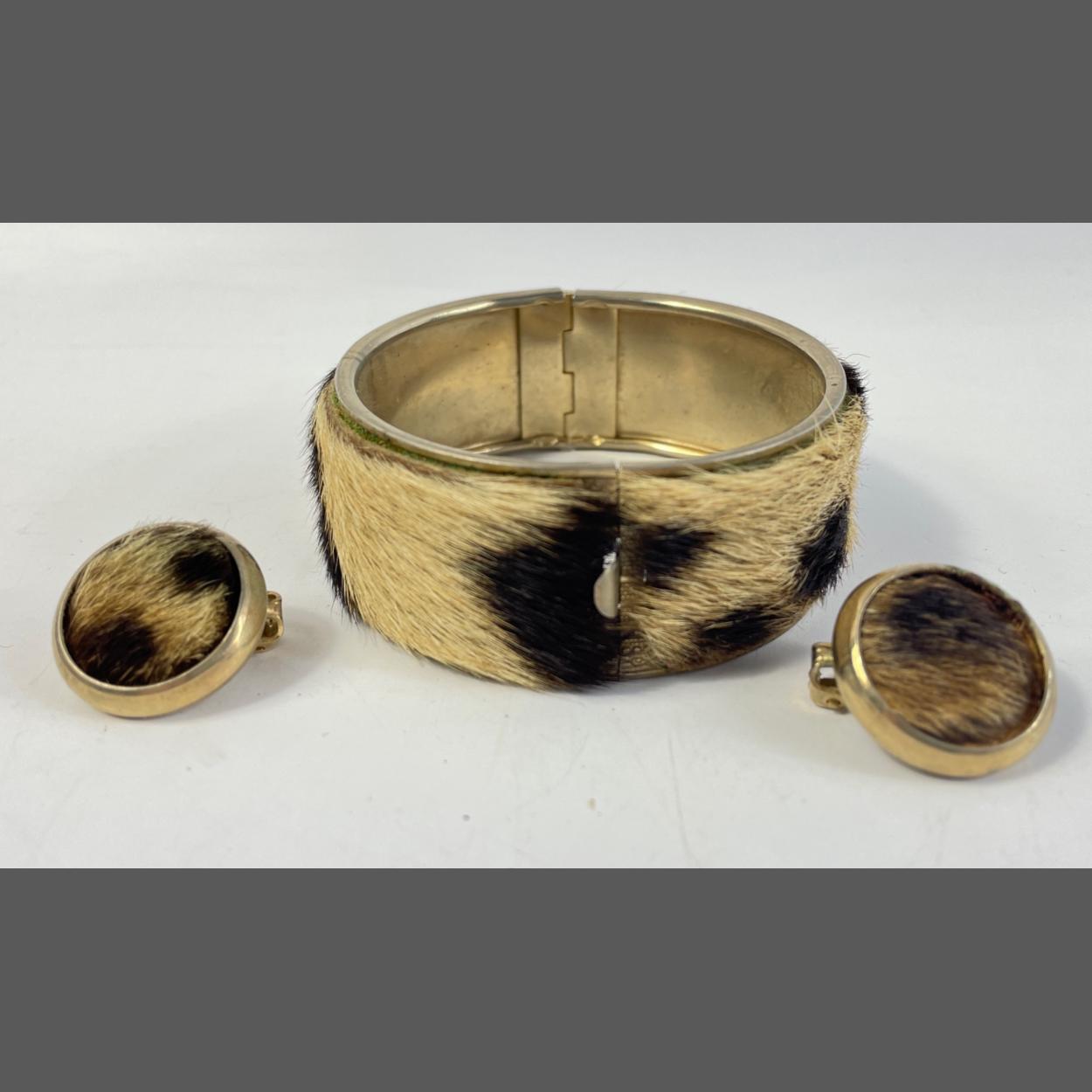 VINTAGE CHIC! An unusual lot comprising a bangle trimmed with fur (6cm dia) with a matching pair of clip-on earrings (1cm dia)