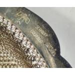 VERY GRAND! A ladies white metal mesh evening purse set with a blue stone 7cm wide approx and 17cm long plus strap