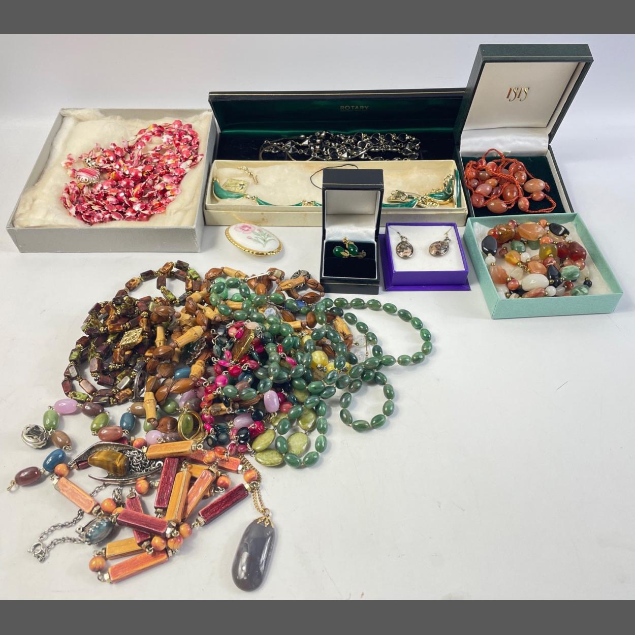 A mixed collection of costume jewellery being mainly beaded necklaces plus earrings - mostly purchased from boutiques!