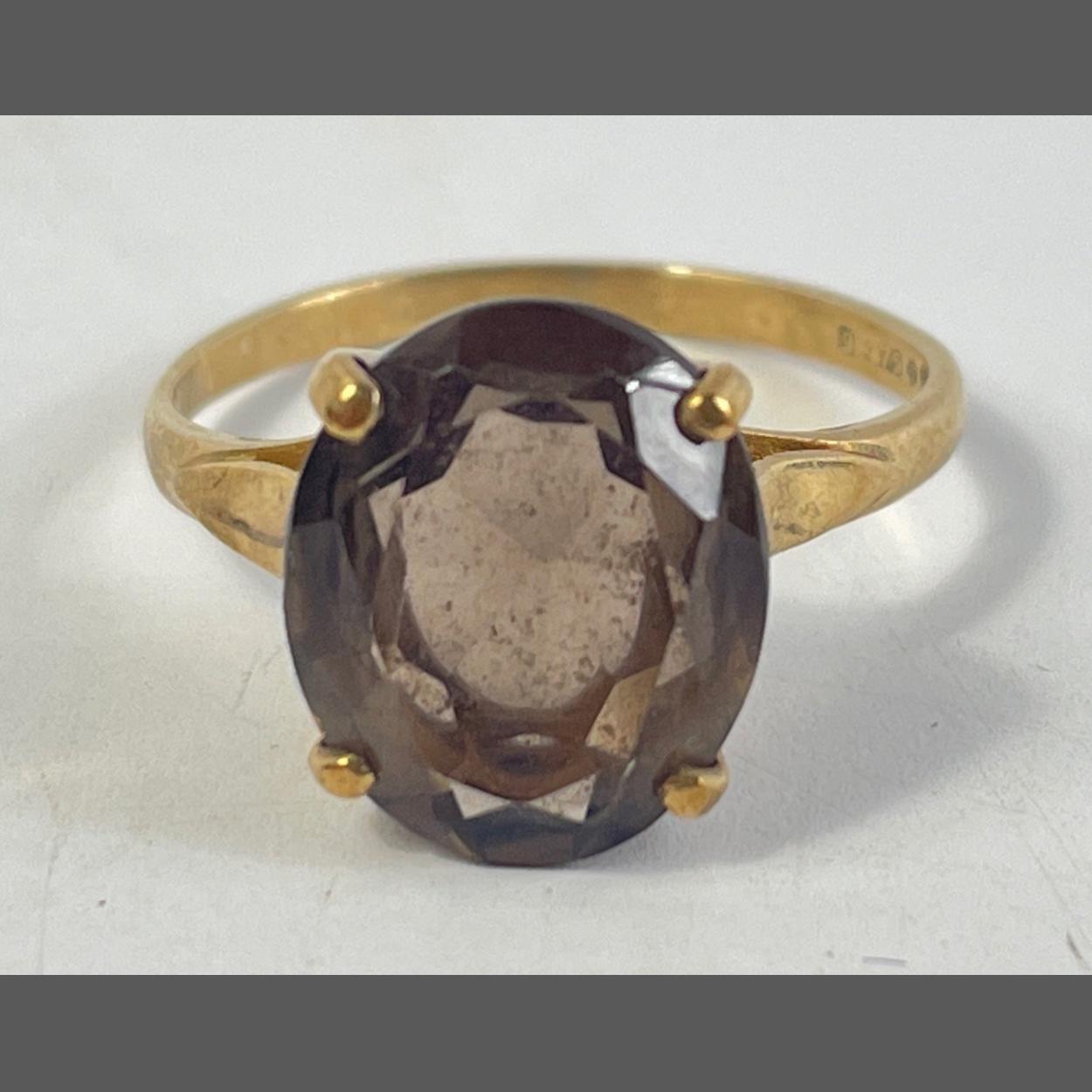 A ring with purple stone (1cm) stamped 375, size N, gross weight 2.45g