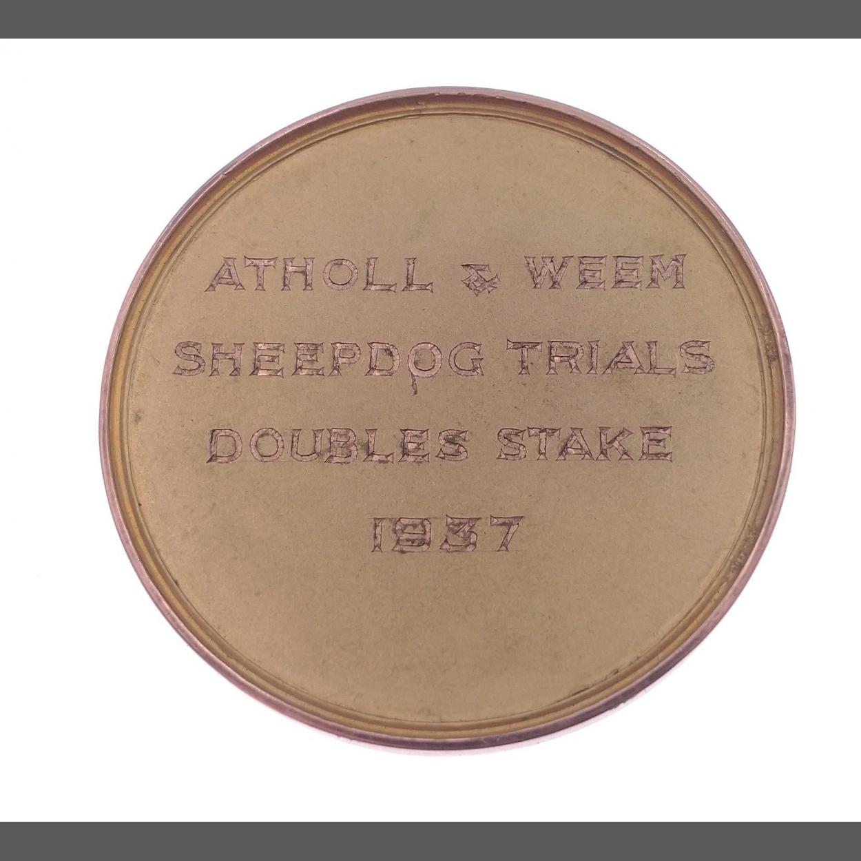 GOOD BOY SHEP ! A stunning large 9ct GOLD Sheepdog Medal. Atholl & Weem Sheepdog Trials Doubles Stake 1937. 'Won by' is blank. Carries full Hamilton & Inches 375 Birmingham hallmarks for 1937. Weighs in at a hefty 28.8g approx.