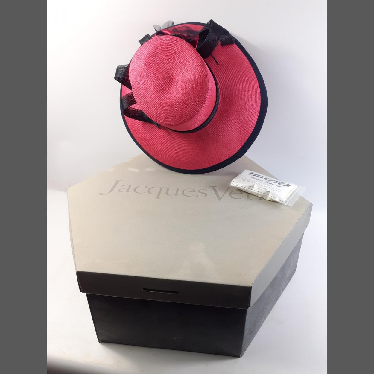 JAQUES VERT Ladies large dress pink hat in original box. Dress up for the Beltane or just to pick up your pies at Forsyths. Superb quality 19cm internally. Box is rather tatty however it has done its job.