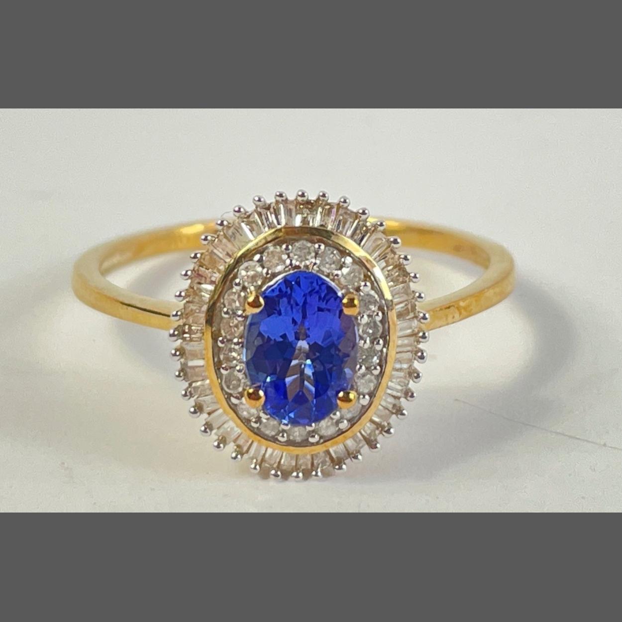 A ring, stamped TJC 375, with a central tanzanite and surrounded by diamonds (tested), Size T, gross weight 2.28g, cost £249.99 new