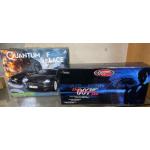 A QUANTUM OF SOLACE 007 SCALEXTRIC Alfa Romeo 159 and an Aston Martin DBS presentation set of two model cars with THE MINICHAMPS Bond triple die-cast car collection to include Ford 03 Thunderbird - Aston Martin V12 Vanquish and Jaguar XKR Roadster - all within its original presentation flip-case