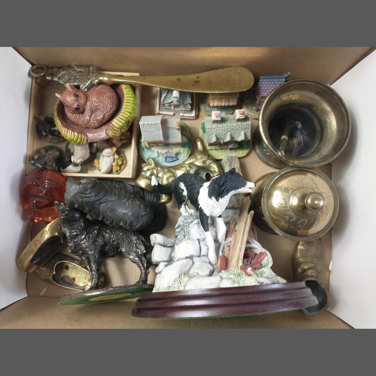 A small collection of ornaments including a Borders Fine Arts 1995 Scottish made JH59 Bob in good order along with various other small ornaments and brass trinkets.