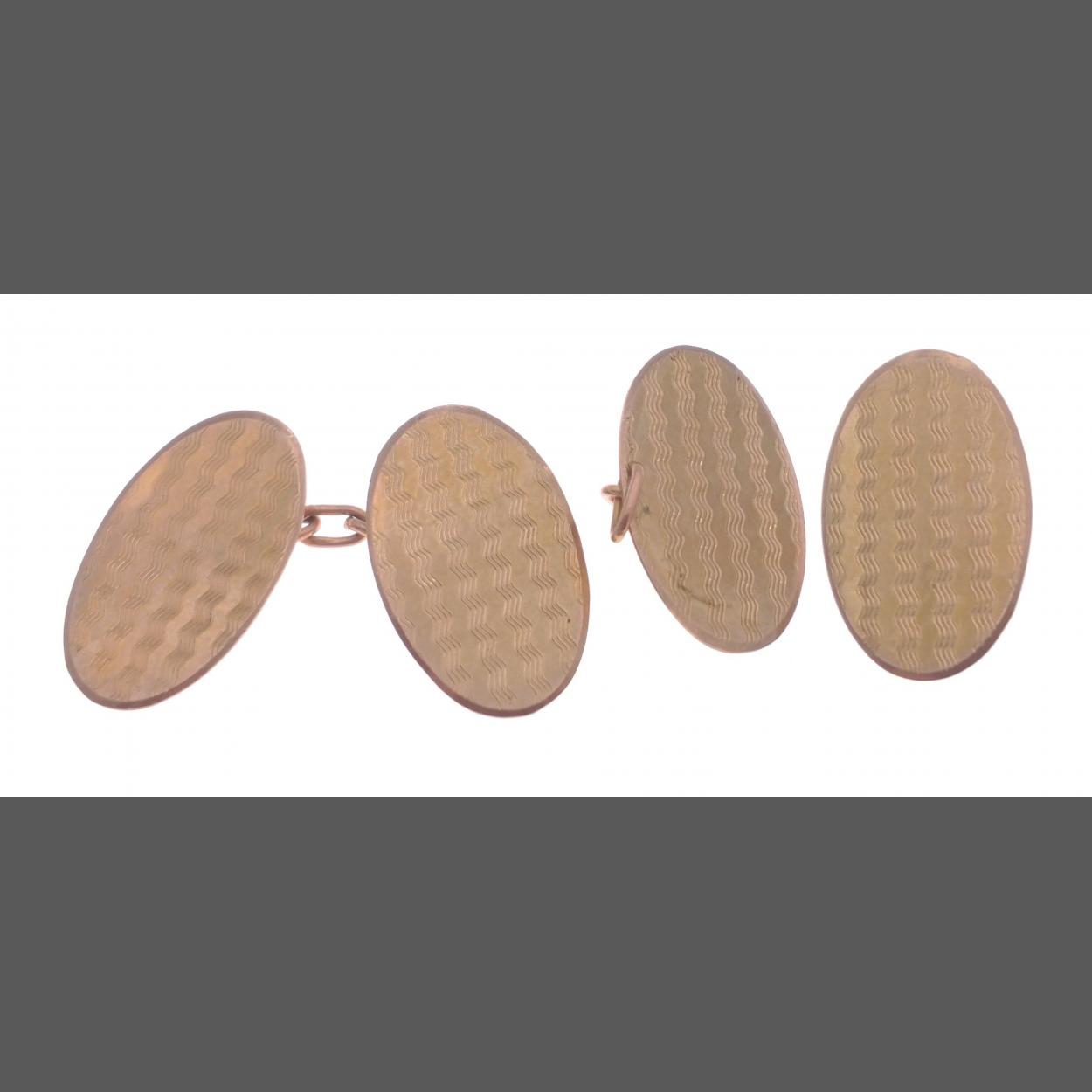 A pair of 375 stamped engine-turned cuff links weight 3.12g approx