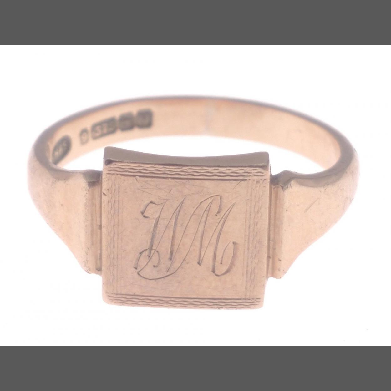 375 Signet ring with engraved WM 4.82g approx. Size U/V