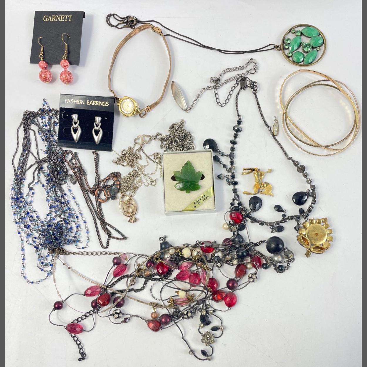 A small box to include some nice quality costume jewellery to include a wristwatch, necklaces etc