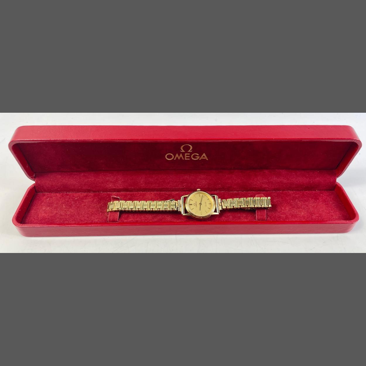 An exquisite OMEGA ladies gold effect bracelet wrist watch - in very good condition with its original OMEGA box - no paperwork comes with this watch