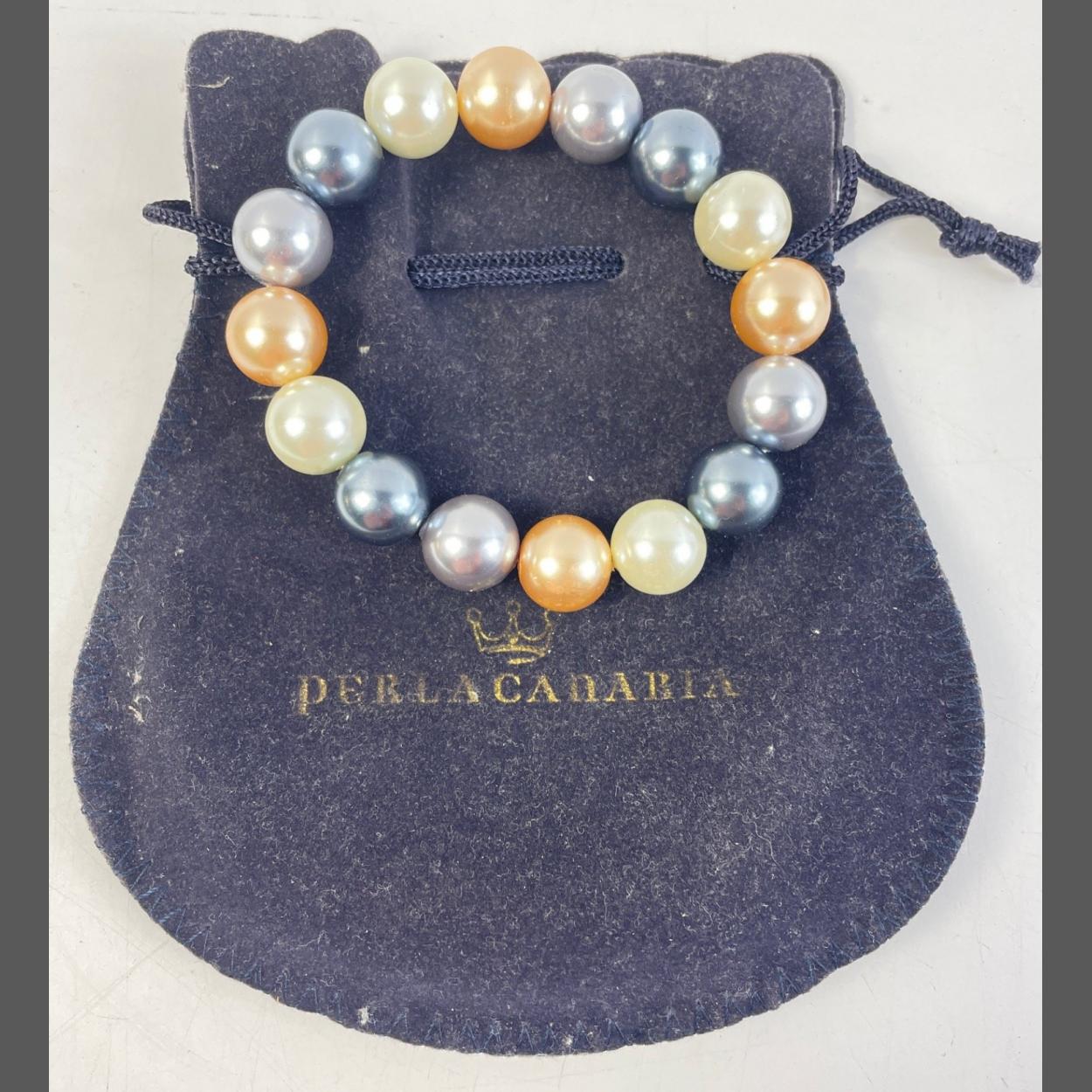 3316 CLASSY! PERLA CANARIA coloured pearls expandable bracelet within its original velvet style pouch