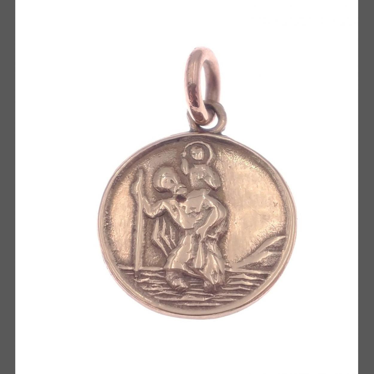 A 375 stamped yellow gold small St Christopher weight 1.32g approx dimension 12mm diameter approx