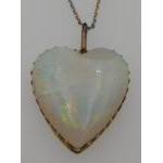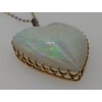 A large HEART SHAPED OPAL set in 14ct(gold jeweller tested independently) on a yellow metal chain 11.13g approx