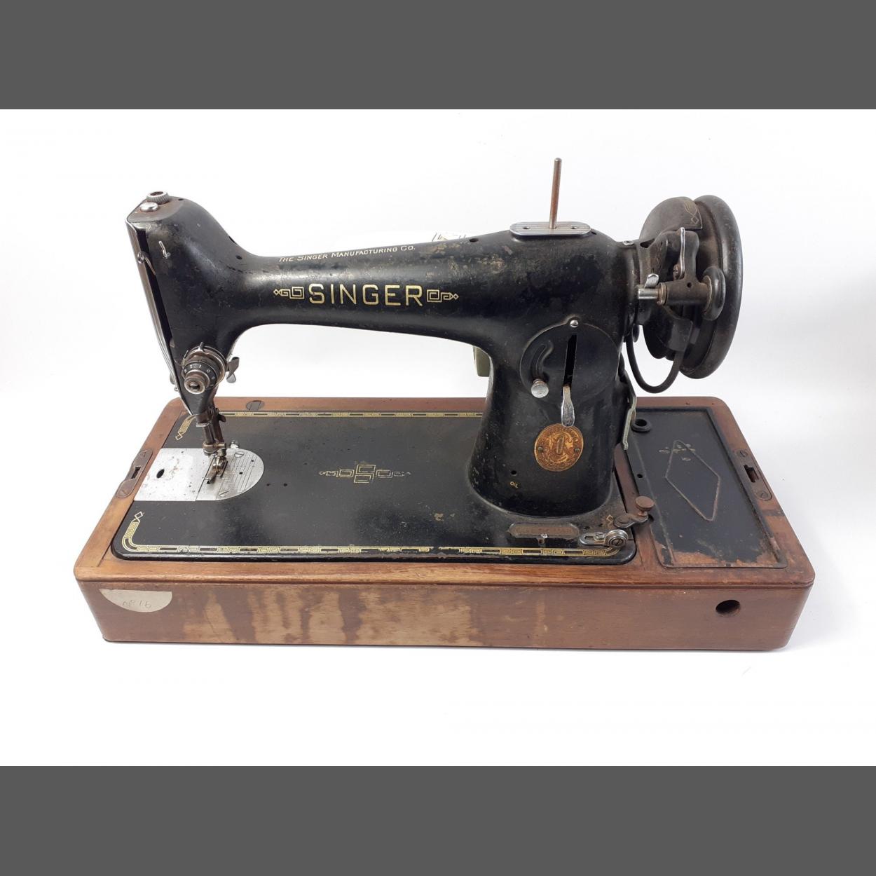 A table top SINGER sewing machine with plaque marked EG 576738 (1951)