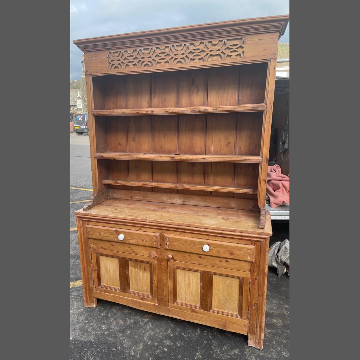 Pine Welsh dresser with two drawer over two cupboards and plate display top peice