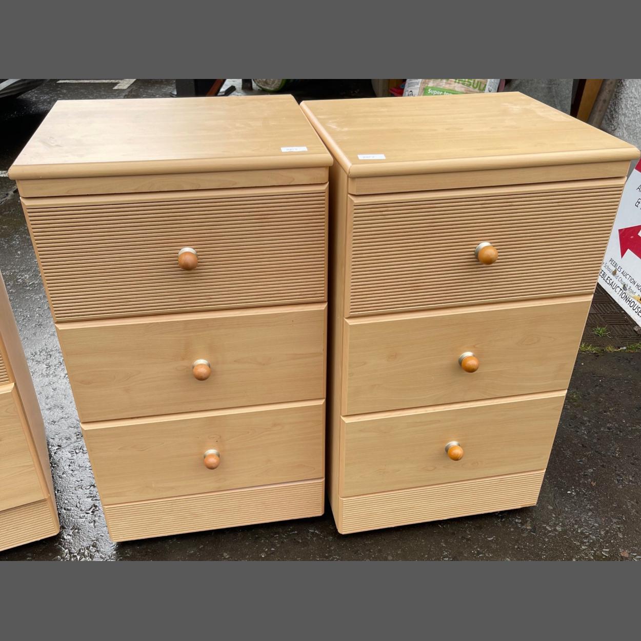 A pair of light ash style 3 drawer bedside cabinets