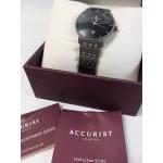 A boxed gent's titanium ACCURIST watch with black face and silver numerals, (Japan MVT GL10) model 8172, face measures 3cm. Watch working when listed