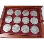 A ROYAL MINT set of The English Civil War coins presented in a wooden display box. A set of 12 coins each 5cm diameter and each hallmarked London 1973 gross weight 998g approx