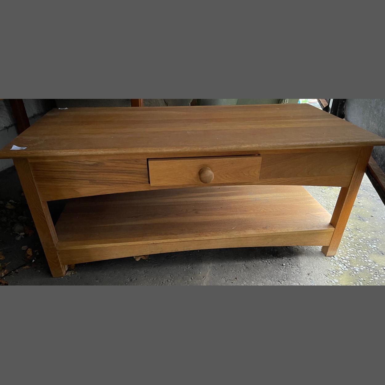 A lovely quality light-oak coffee table with drawer and magazine shelf - dimensions 4ft length x 18" depth x 18" height approx