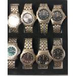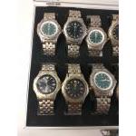 An aluminium style display case with twelve ACCURIST branded perpetuals watches, some used