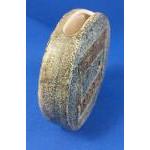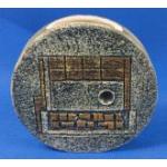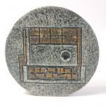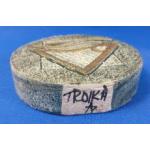 A vintage TROIKA wheel vase with Celtic harp by ALISON BRIDGEN (AB), stands 12cm high, base 3.5cm, no damage