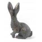 A heavy, alert bronze hare, made in PEEBLES, standing approx 35cm tall