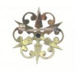 A vintage brooch indistinct 15ct stamp set with seed pearls in a star shape (1 seed missing), 2.5cm dia, gross weight 3.92 g approx